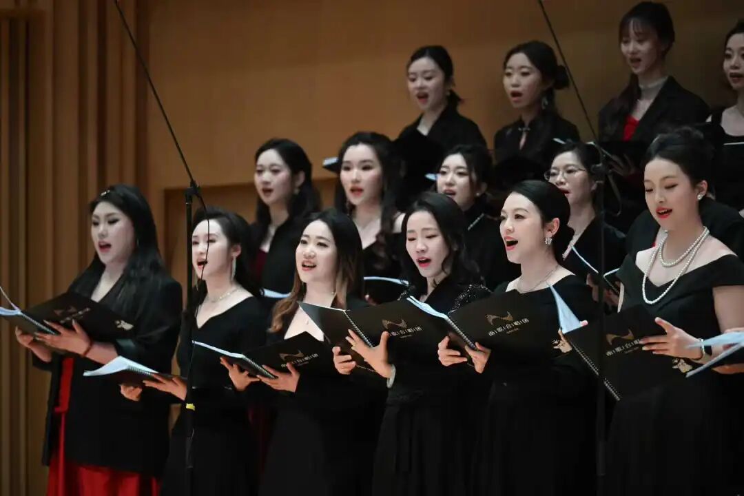 灯光璀璨中,4家联办单位百余位员工组成的演出阵容倾情献艺,成为舞台上最耀眼的风景。女声和声清甜婉转,如春风拂过心田;男声吟唱沉稳有力,似厚土承载深情。从《成都》的市井烟火到《稻香》的纯真怀旧,从《青玉案》的古典雅致到《海阔天空》的激昂奋进,再到《我和我的祖国》的深情礼赞与《如愿》的温情告白,18首经典与流行交织的曲目,在跨声部的默契配合中焕发独特魅力。