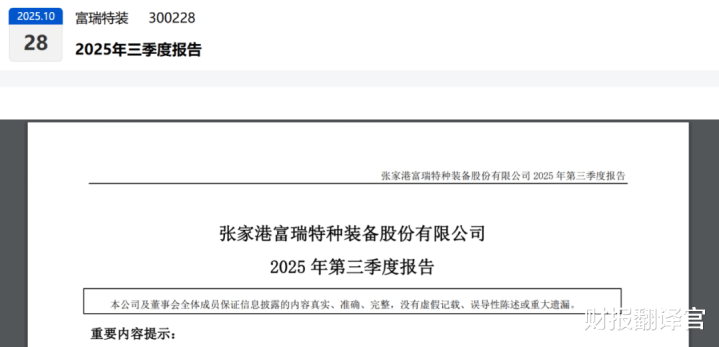 富瑞特装最新季报显示,净利润1.73亿元,同比增长36.93%,表现稳健。